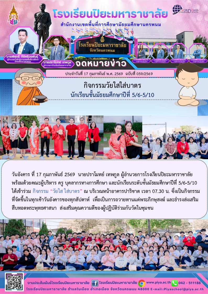 กิจกรรมวัยใสใส่บาตรนักเรียนชั้นมัธยมศึกษาปีที่ 5/6-5/10 |