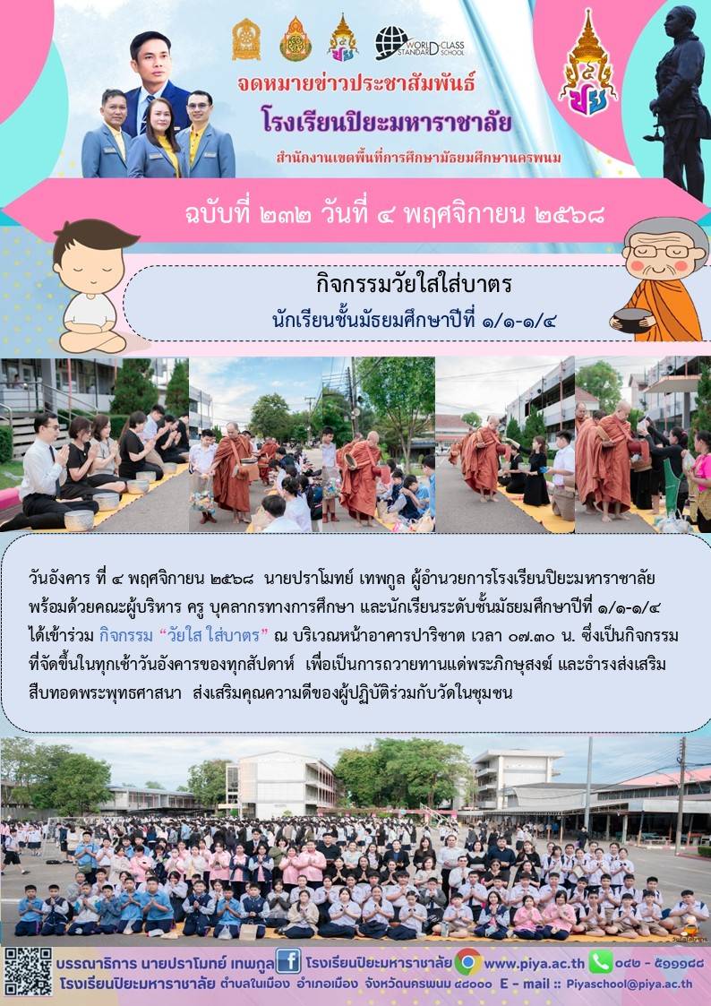 กิจกรรมวัยใสใส่บาตรนักเรียนชั้นมัธยมศึกษาปีที่ 4/1-4/5 |
