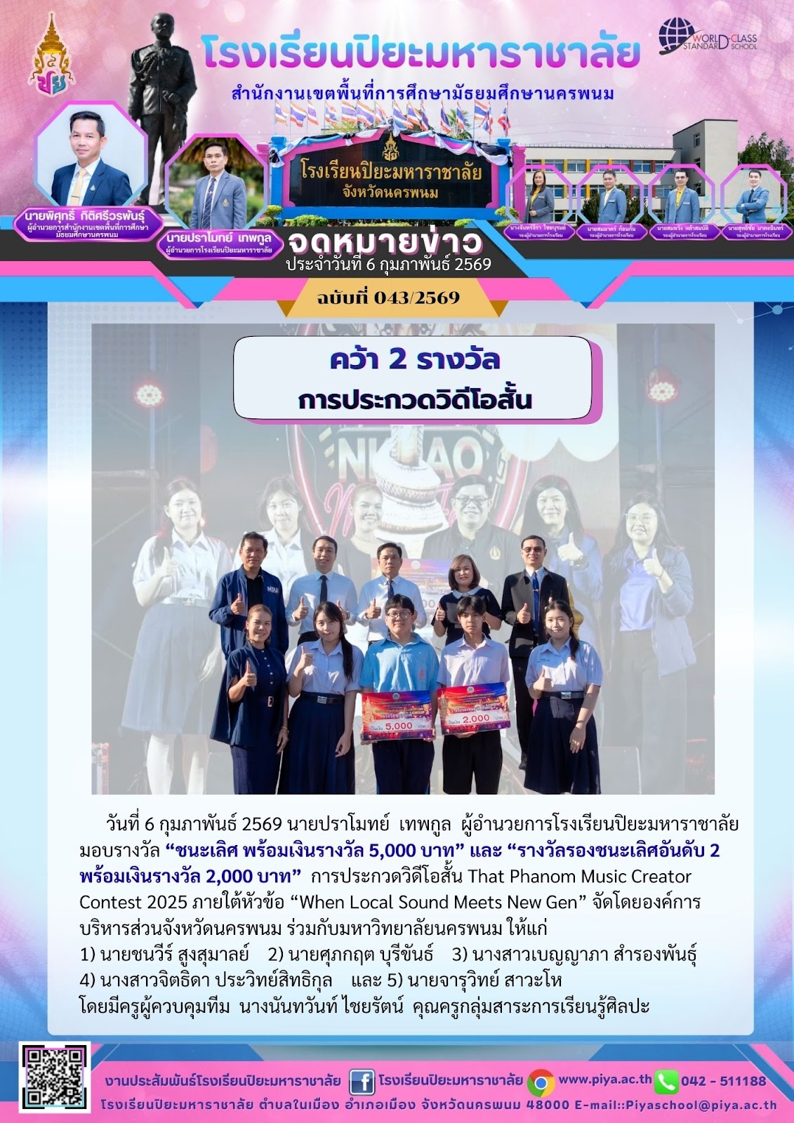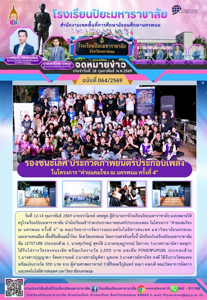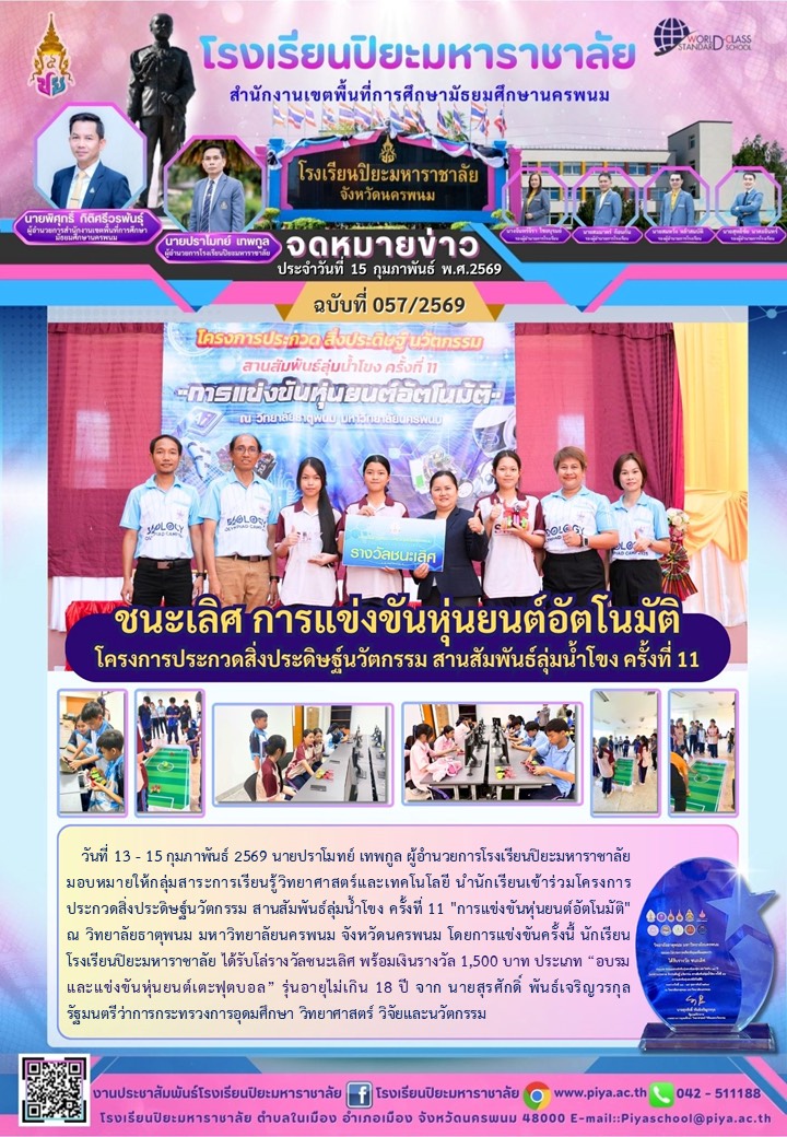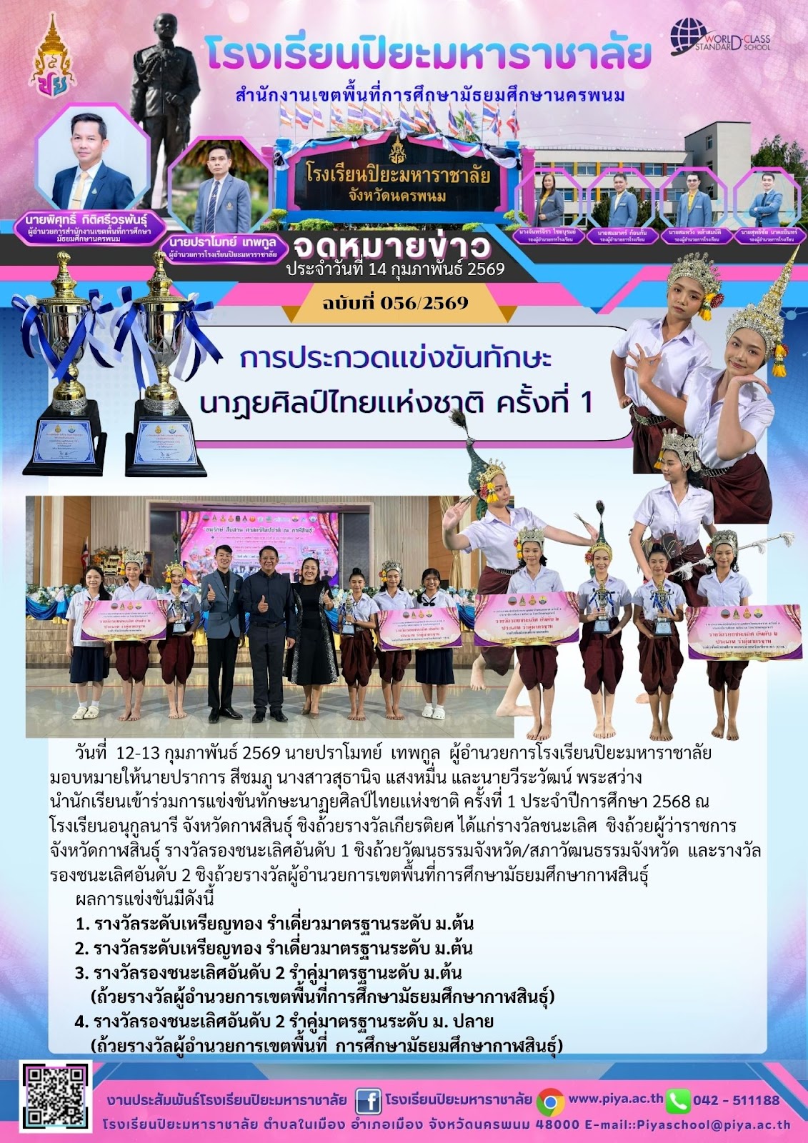 ขอแสดงความยินดีกับนักเรียนที่ได้รับ คัดเลือกกิจกรรมวัฒนธรรมวินิต ประจำปี 2569 ระดับประเทศ |