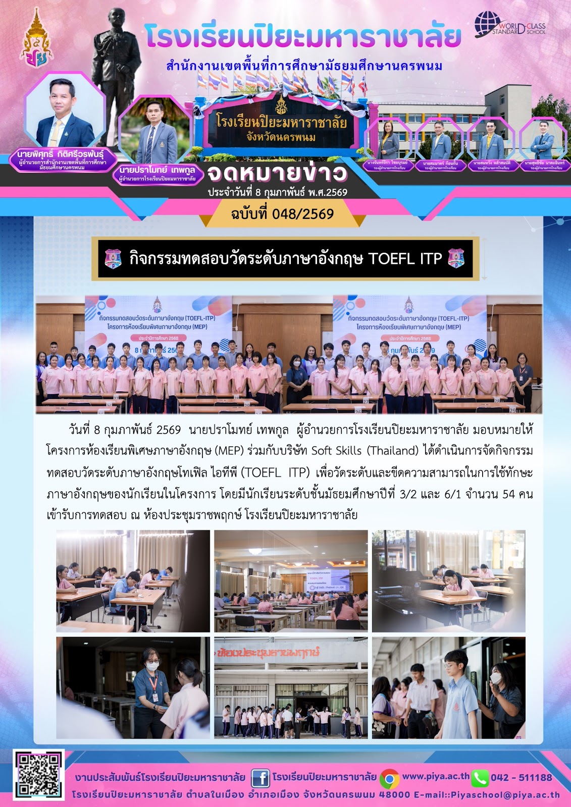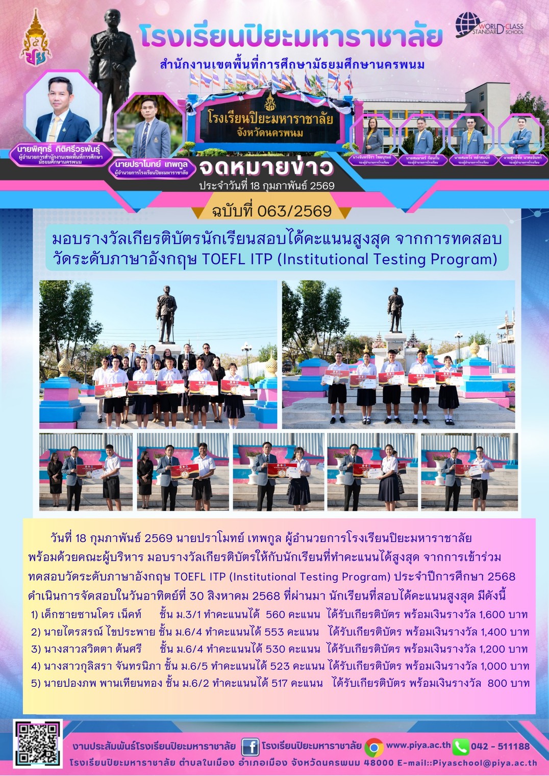 มอบรางวัลเกียรติบัตรนักเรียนสอบได้คะแนนสูงสุด TOEFL ITP |