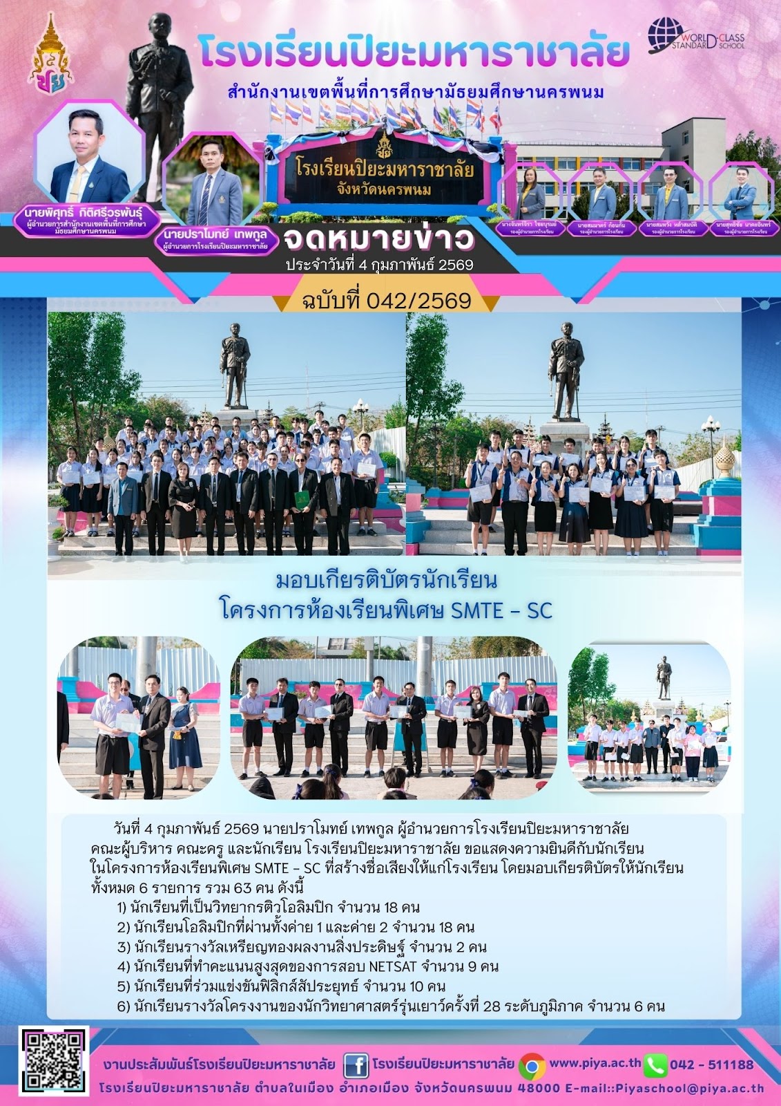 มอบเกียรติบัตรโครงการห้องเรียนพิเศษ SMTE |