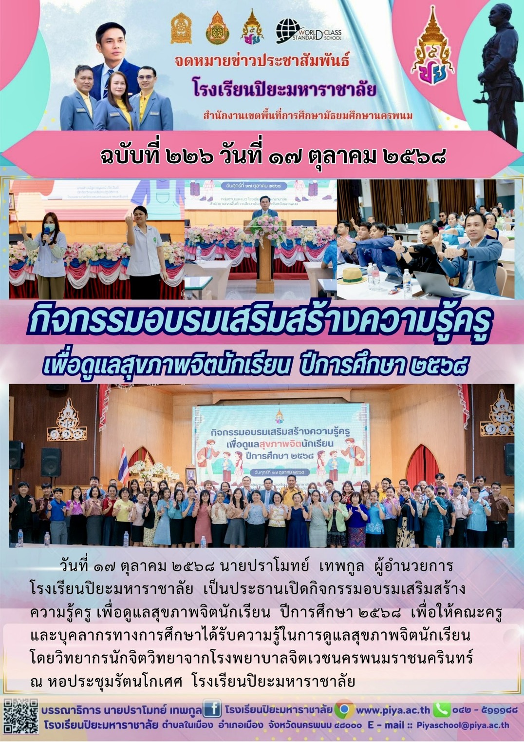 กิจกรรมอบรมเสริมสร้างความรู้ครูเพื่อดูแลสุขภาพจิตนักเรียน |