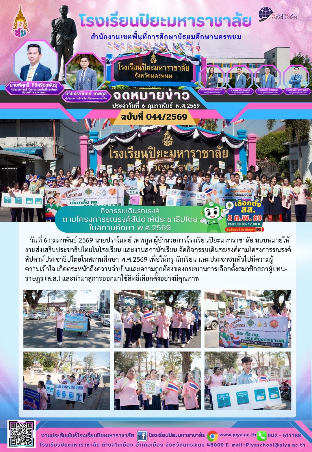กิจกรรมเดินรณรงค์ตามโครงการรณรงค์สัปดาห์ประชาธิปไตยในสถานศึกษา พ.ศ.2569 |