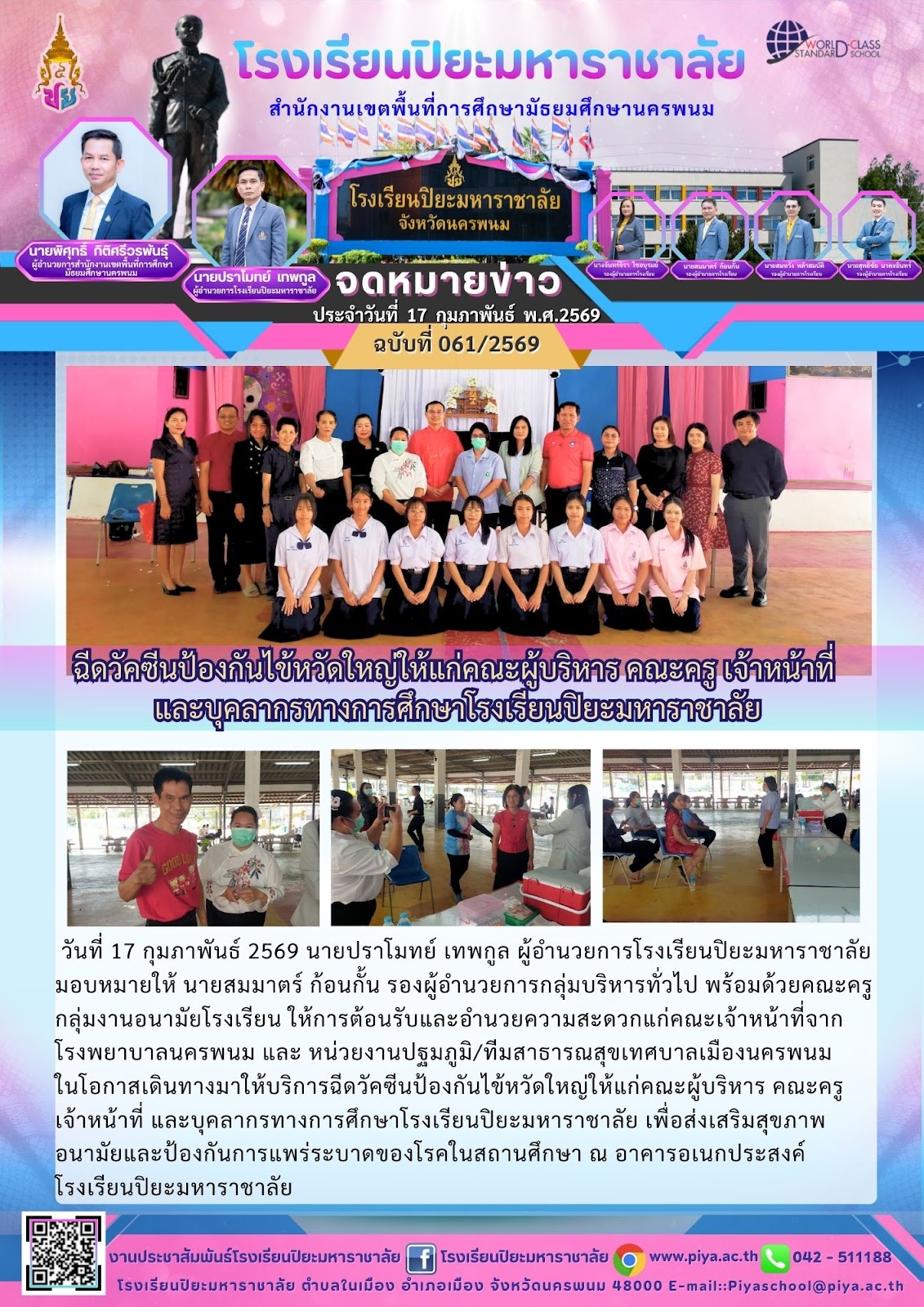 ฉีดวัคซีนป้องกันไข้หวัดใหญ่ให้แก่คณะผู้บริหาร คณะครู เจ้าหน้าที่