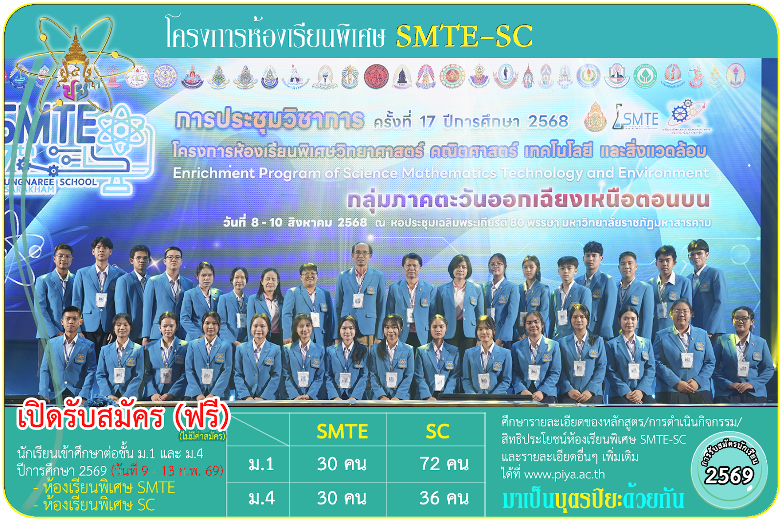 รายละเอียดการรับสมัครเข้าศึกษาต่อ โครงการห้องเรียนพิเศษ SMTE-SC ปีการศึกษา 2569