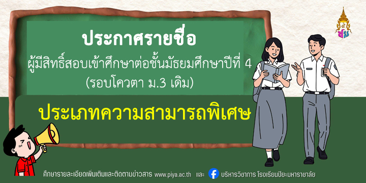ประกาศรายชื่อนักเรียนที่มีสิทธิ์สอบเข้าศึกษาต่อ ม.4 ปีการศึกษา 2569 (โควตา ม.3 เดิม ประเภทความสามารถพิเศษ)