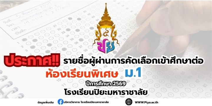 ประกาศรายชื่อสอบห้องเรียนพิเศษ ม.1