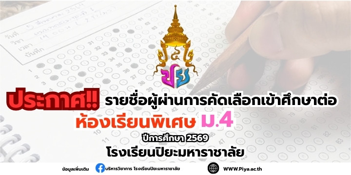 ประกาศรายชื่อสอบห้องเรียนพิเศษ ม.4
