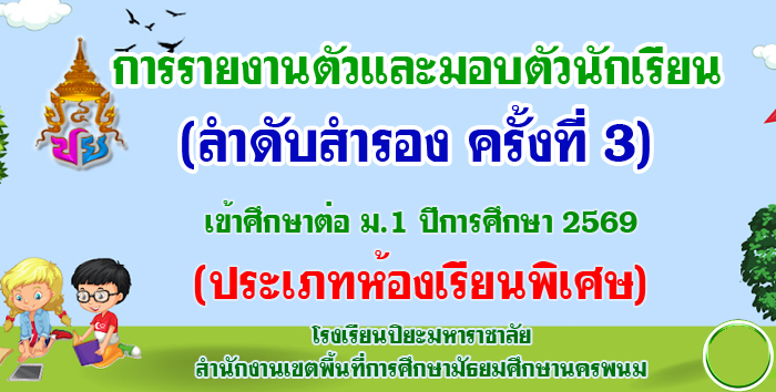 การรายงานตัวและมอบตัวนักเรียนเข้าศึกษาต่อ ม.1 ปีการศึกษา 2569 ประเภทห้องเรียนพิเศษ (ลำดับสำรอง ครั้งที่ 3)