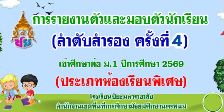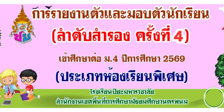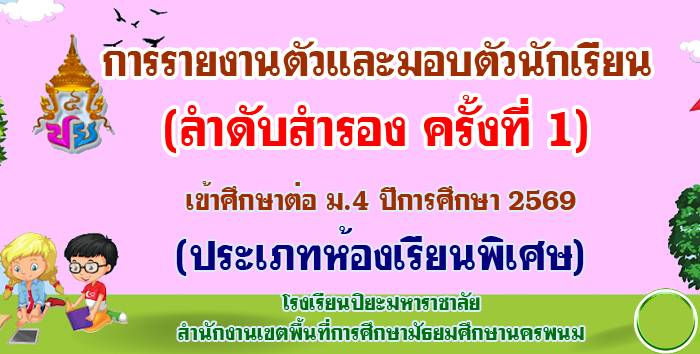 การรายงานตัวและมอบตัวนักเรียนเข้าศึกษาต่อ ม.4 ปีการศึกษา 2569 ประเภทห้องเรียนพิเศษ (ลำดับสำรอง ครั้งที่ 1)