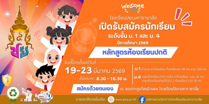 ตารางรับสมัครนักเรียนใหม่ ม.1และ ม.4 ปีการศึกษา 2569