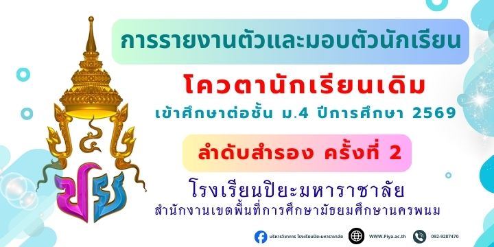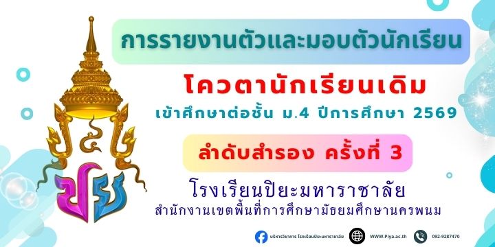 ขอให้นักเรียนที่มีสิทธิ์รายงานตัวเข้าศึกษาต่อ ม.1 และ ม.4 ปีการศึกษา 2569 (ตามรายชื่อที่ประกาศ) รายงานตัว online ผ่านปุ่มด้านล่างนี้