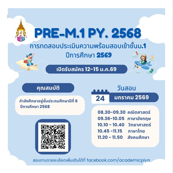 การทดสอบประเมินความพร้อมสอบเข้าชั้น ม.1 ปีการศึกษา 2569