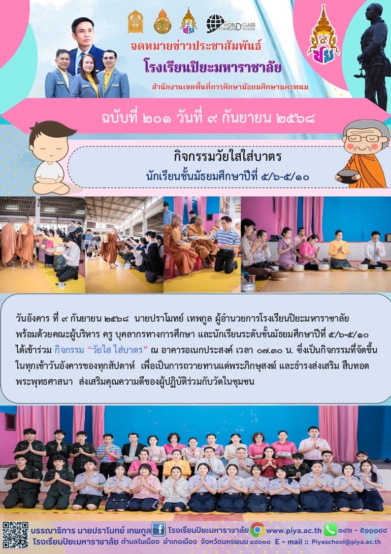 กิจกรรมวัยใสใส่บาตรนักเรียนชั้นมัธยมศึกษาปีที่ 5/1-5/5 |