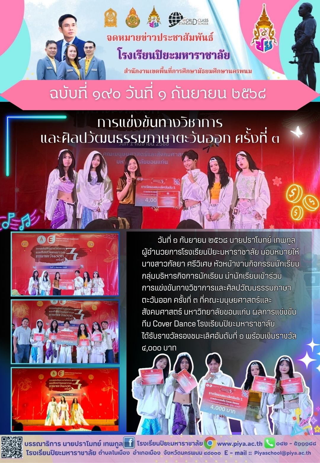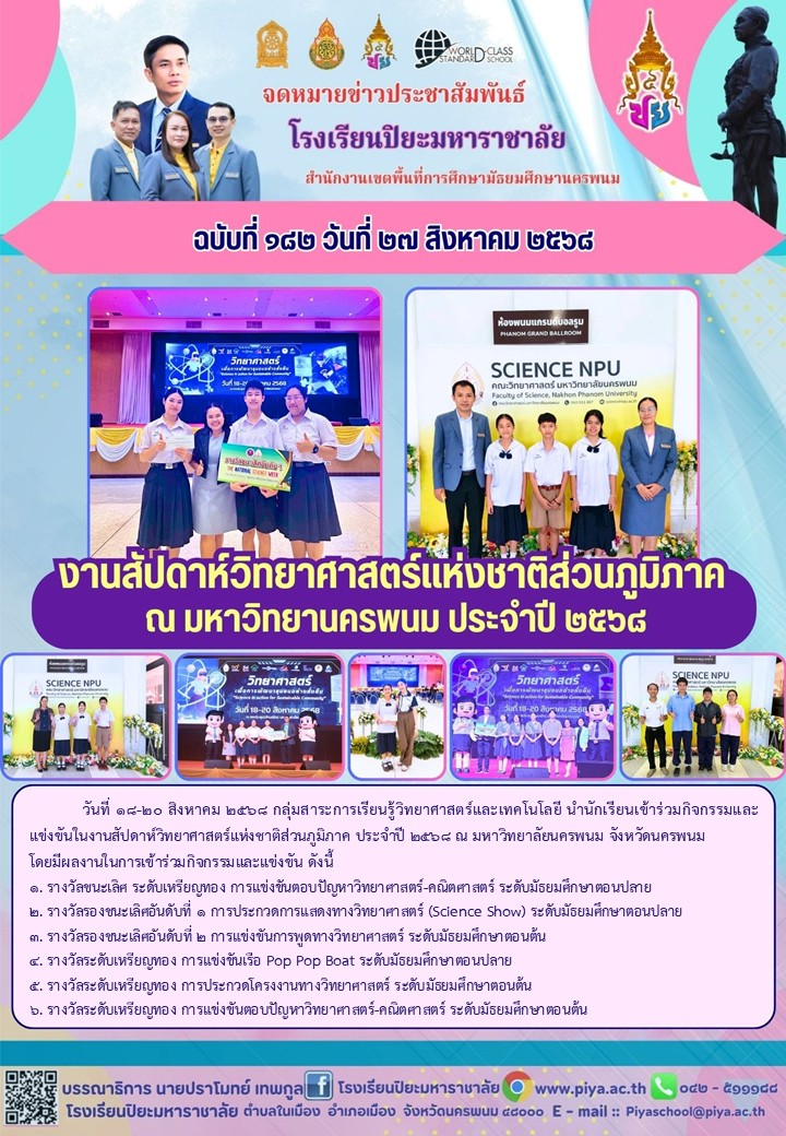 รับโล่รางวัลชนะเลิศพร้อมทุนการศึกษา ในการประกวดสุนทรพจน์ “28 กรกฎามหามงคล" |
