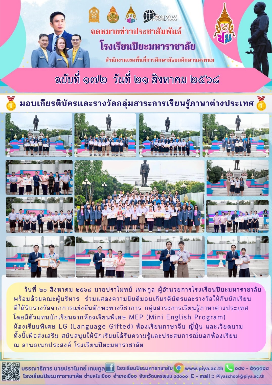 กิจกรรมรับมอบเกียรติบัตรการแข่งขันกลุ่มสาระการเรียนรู้ภาษาต่างประเทศ |