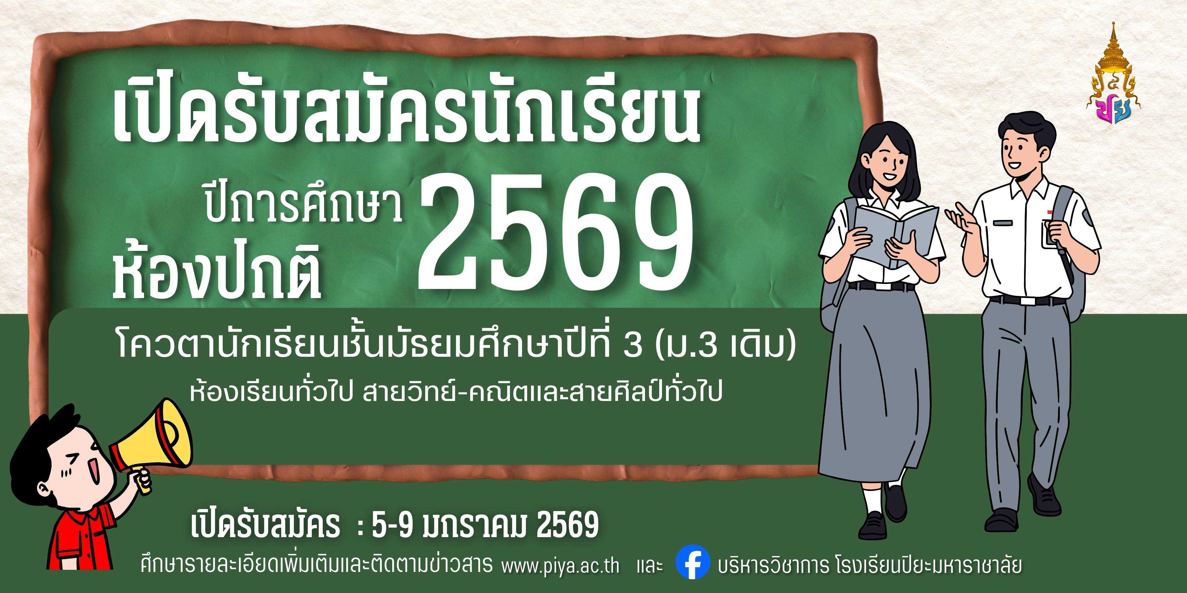 ประกาศรับสมัครนักเรียนเข้าศึกษาต่อในระดับชั้น ม.4 (โควต้า ม.3 เดิม) ปีการศึกษา 2569